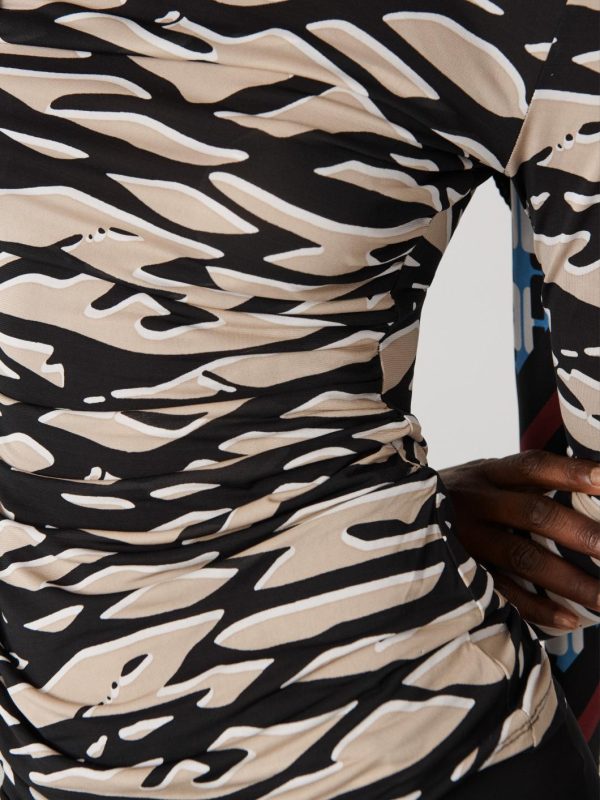 Diane Von Furstenberg Women’s Perfect Long Sleeve Top – Shadow Twigs Horizontal Pattern