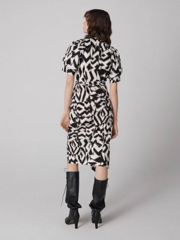 Blending matte jersey and cotton, the Arina midi dress balances structure with stretch in a wrap-style silhouette.