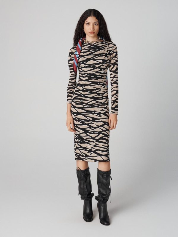 Knee-Length Dresses | Women Diane Von Furstenberg Darrius Long Sleeve Dress Shadow Twigs Horizontal