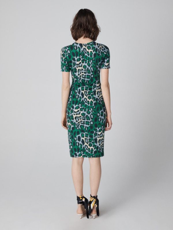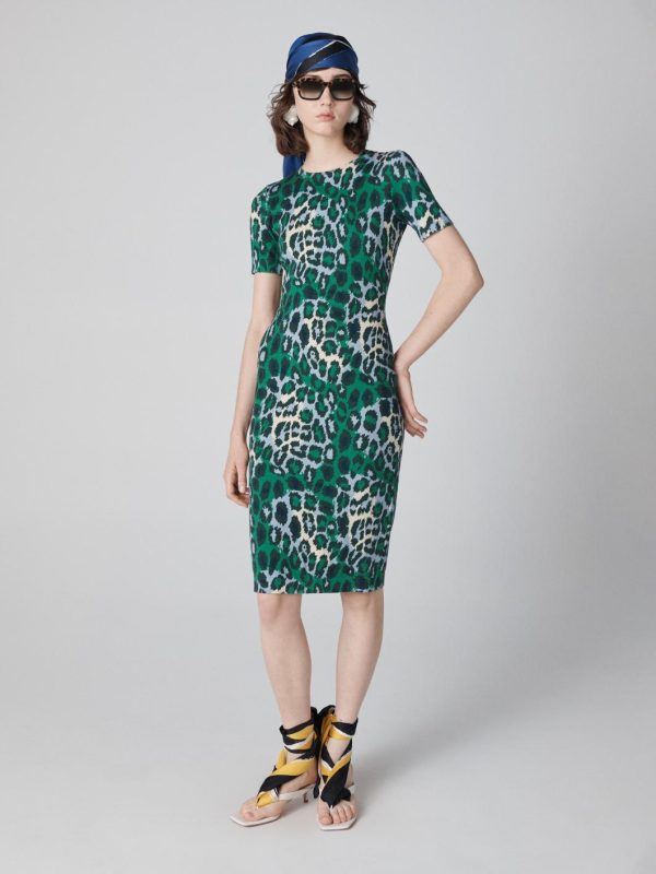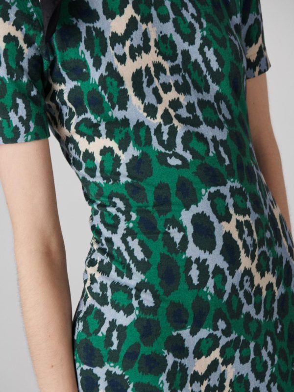 Dresses | Women Diane Von Furstenberg Florence Knit Short Sleeve Dress Giant Jungle Cat Printed