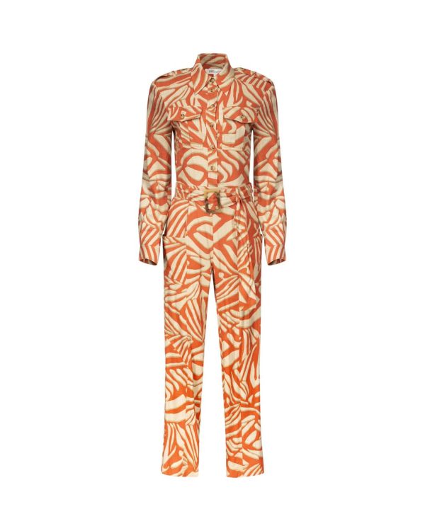 Crafted from breathable linen, the Madilyn Jumpsuit pairs bold print with effortless tailoring.