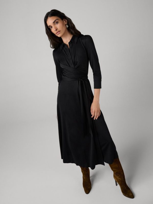 The Sana dress fuses the tailoring of a shirt with the sensuality of a wrap in a soft, modern jersey.