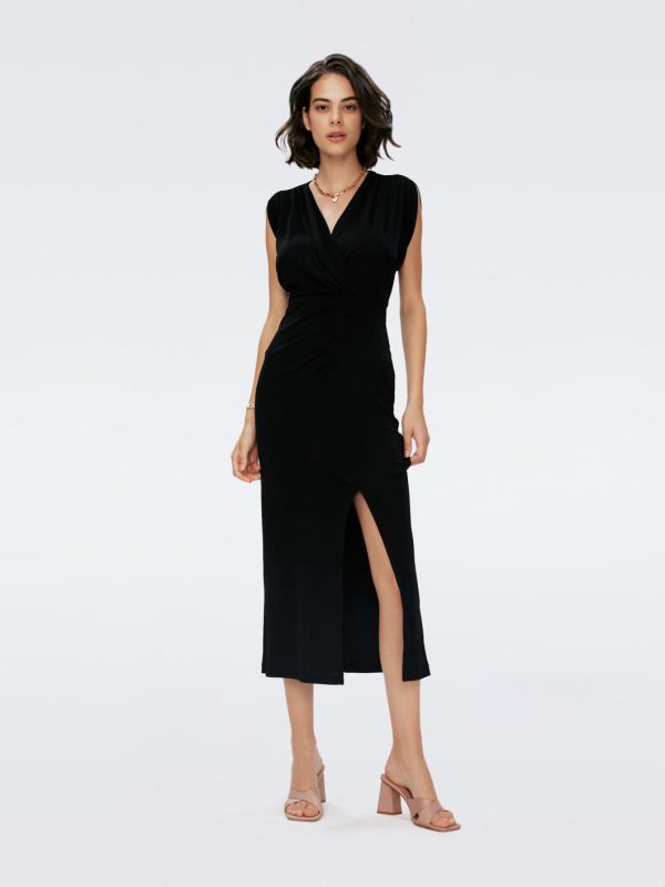 Dresses | Women Diane Von Furstenberg Abigail Silk Jersey Midi Wrap Dress Chain Link Medium Black