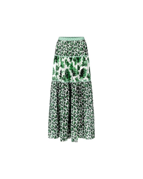 Crafted from a silk-cotton blend, the Shiloh Skirt features contrasting prints and has a light and luxurious drape.